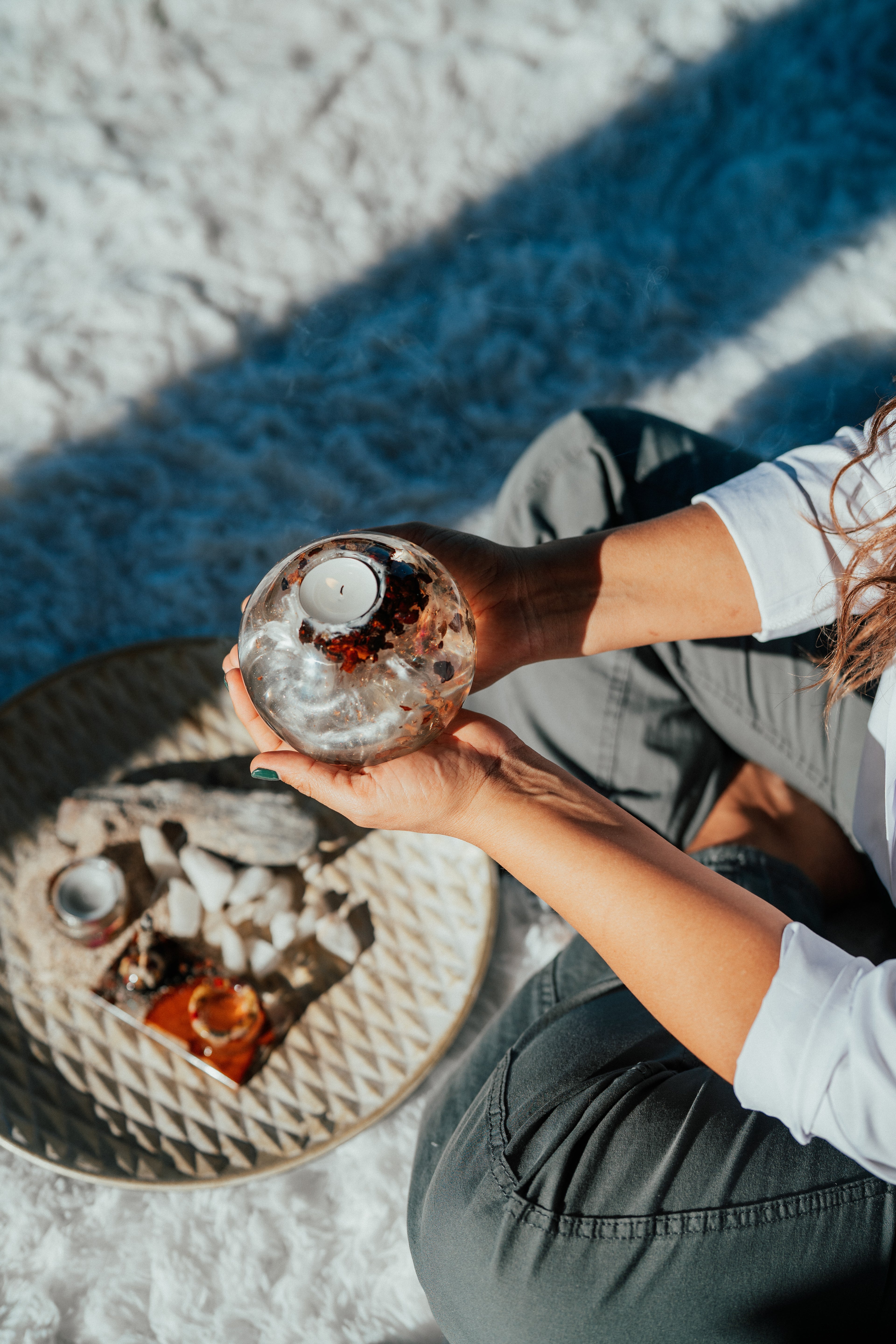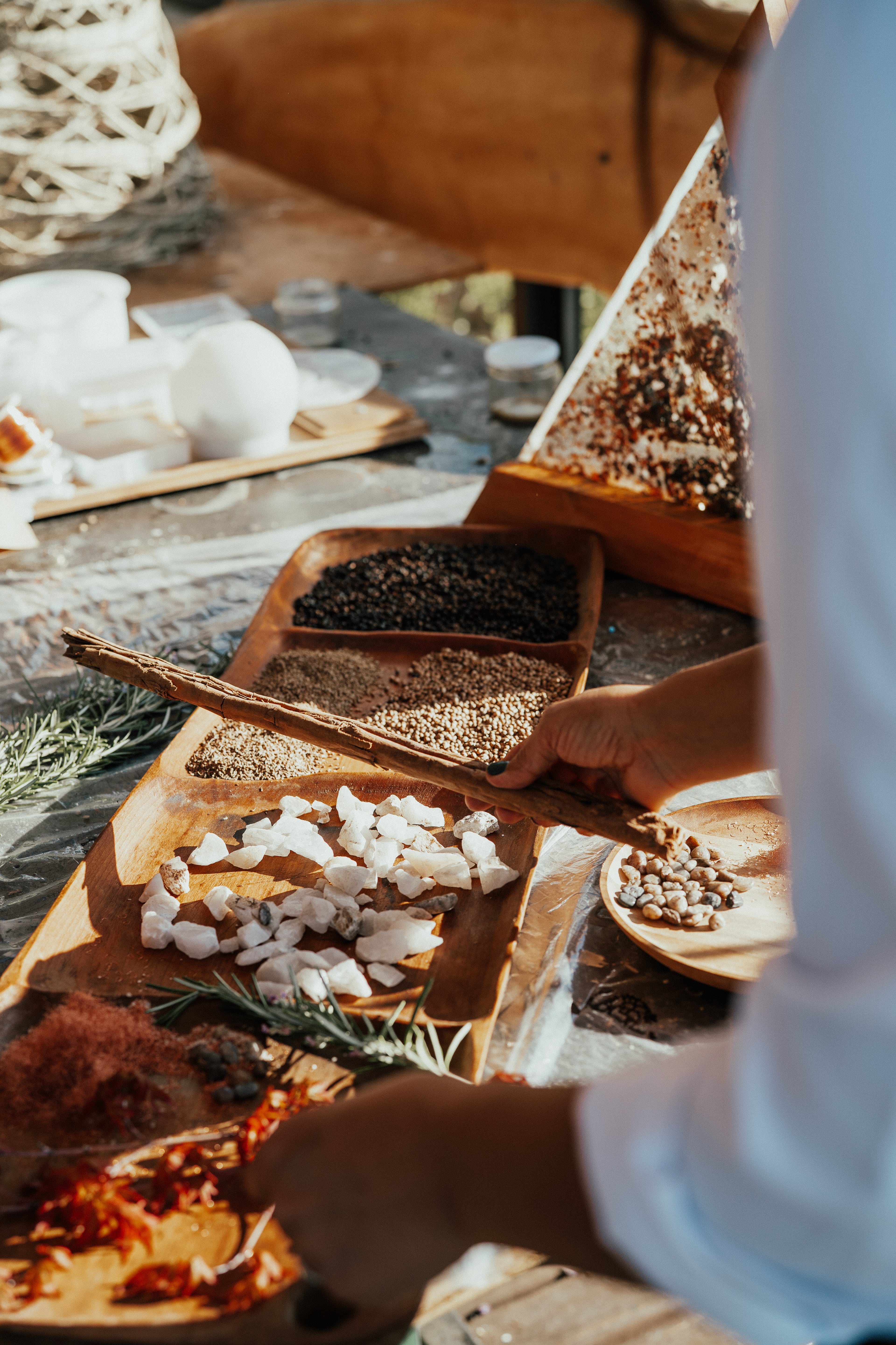 El corazón del retiro es la creación. En esta etapa integrarás lo energético y lo material mediante prácticas artísticas que despiertan la intención detrás de cada objeto y espacio: Ikebana – arte floral japonés. Creación de lámparas de resina Vert. Elaboración de armonizadores de espacios que limpian y elevan la energía. Diseño de altar de los 4 elementos.